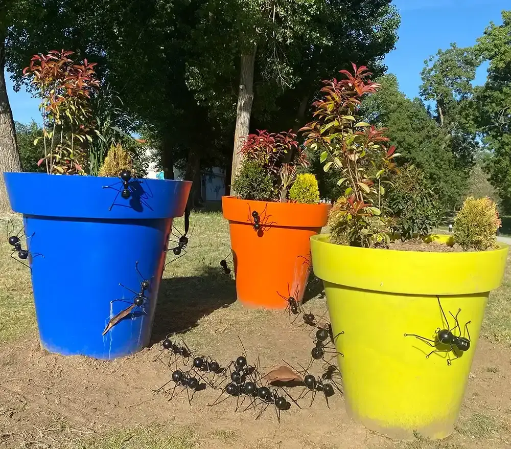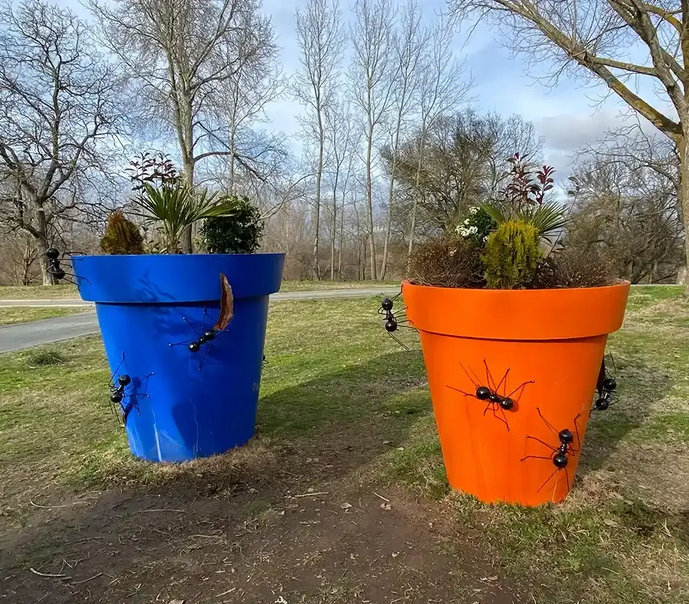 Microcosmos en metal: Junto al Centro de Interpretación, un ejército de 28 hormigas denominadas "Matildas" recorre las coloridas macetas del entorno, demostrando que el arte también reside en los detalles minuciosos de apenas 40 centímetros.