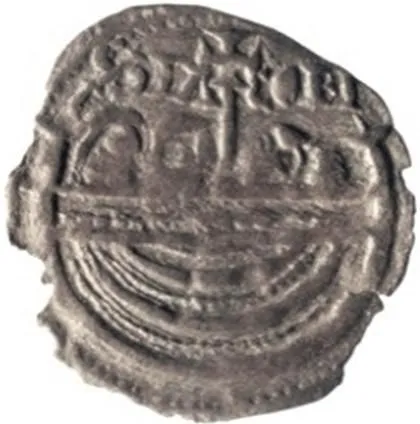 | Reverso | S IACOBI (Barca con mástil y cruz trasladando al Apóstol) |