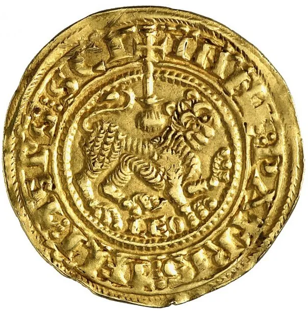 | Curiosidad | Esta impresionante pieza de oro destaca por su leyenda trinitaria y por el uso del título "Dei Gratia" junto al busto del monarca. |