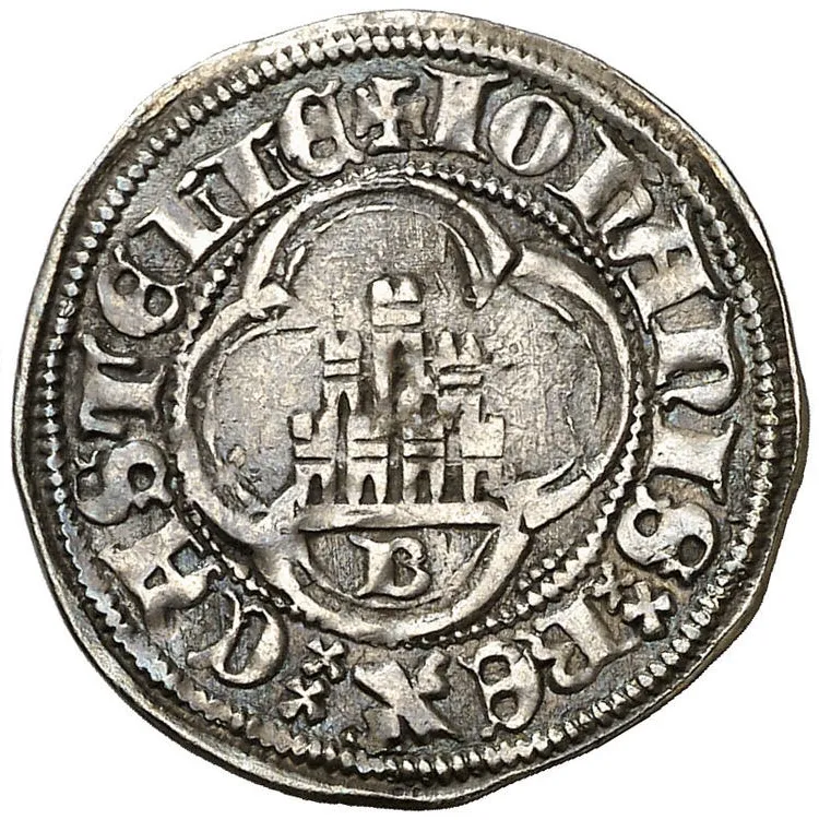 | Anverso | IOHANES REX (Busto coronado a izquierda) |