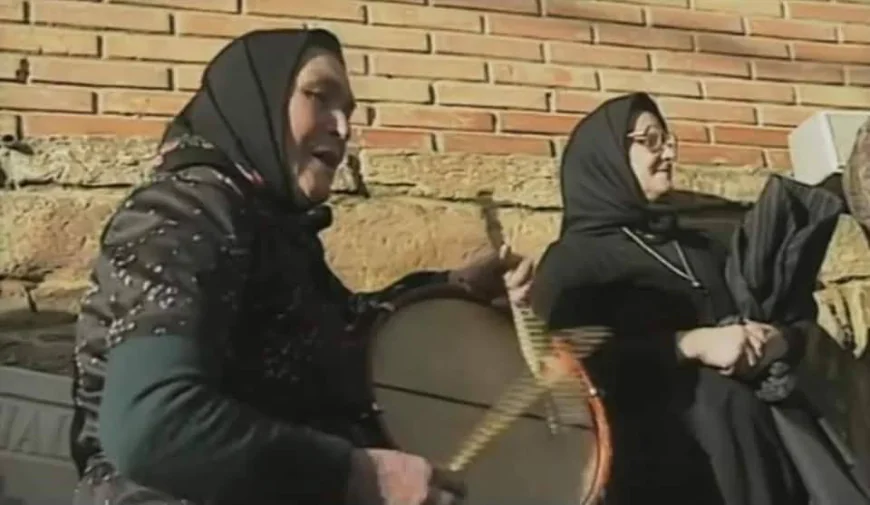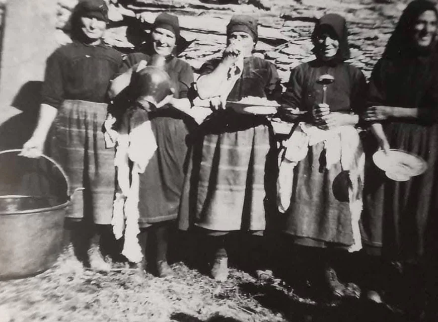 La Ti Feliciana (†) al tamboril y la Ti Soledad (†) en el Baile del Sagrao un primero de enero de la década de los 80