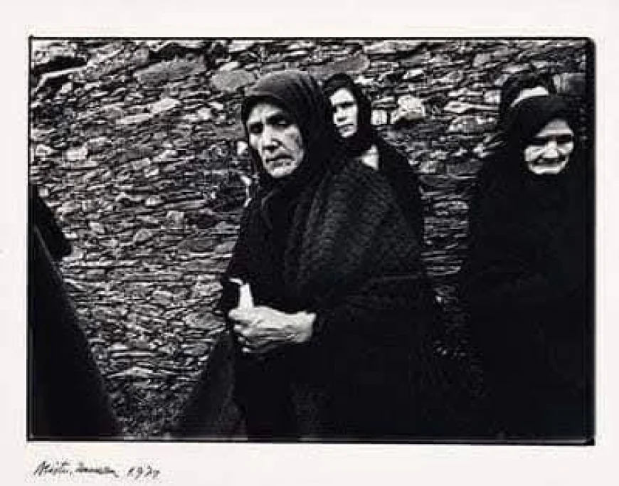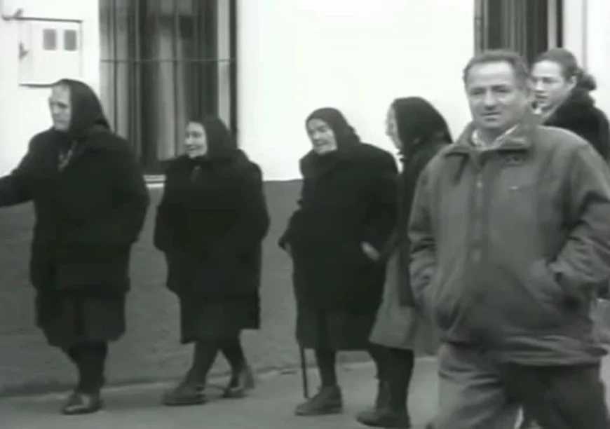 Mujeres de Riofrío de Aliste a la salida de misa con pañuelo negro Años 80