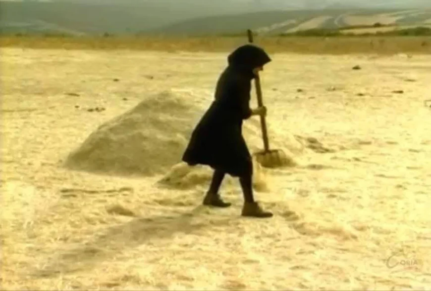 Alistana con pañuelo negro en la era en Valer de Aliste