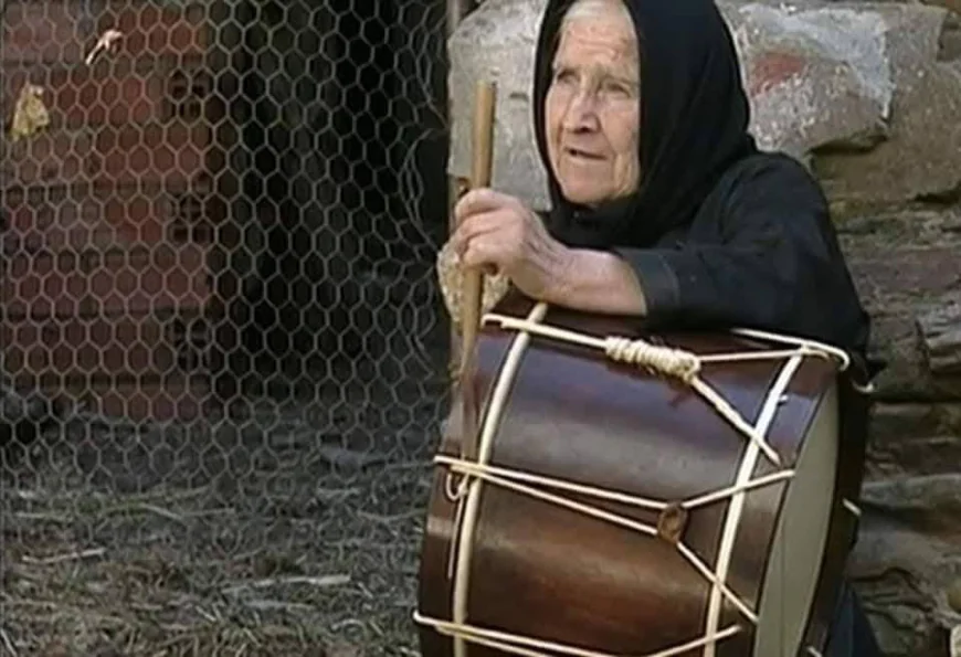 La Ti Julia Chimeno (†) con el tamboril. Años 80 en Riofrío de Aliste