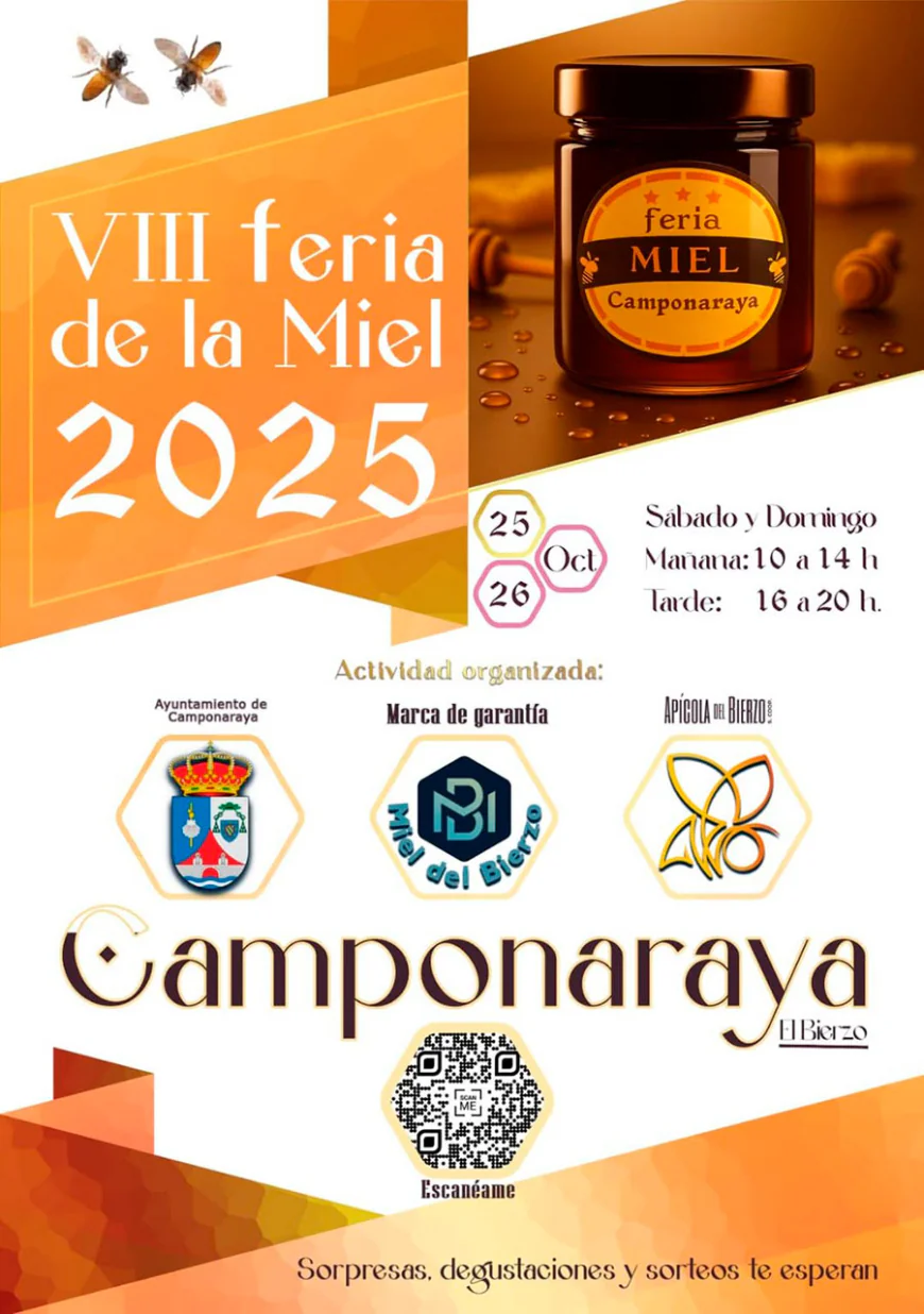 El Recinto Ferial de Camponaraya acogerá los días 25 y 26 de octubre la VIII Feria de la Miel, una cita ya consolidada en el calendario agroalimentario provincial que este año llega con una novedad histórica: será la primera edición en la que la Miel del Bierzo se presenta oficialmente con su Marca de Garantía, recientemente otorgada.