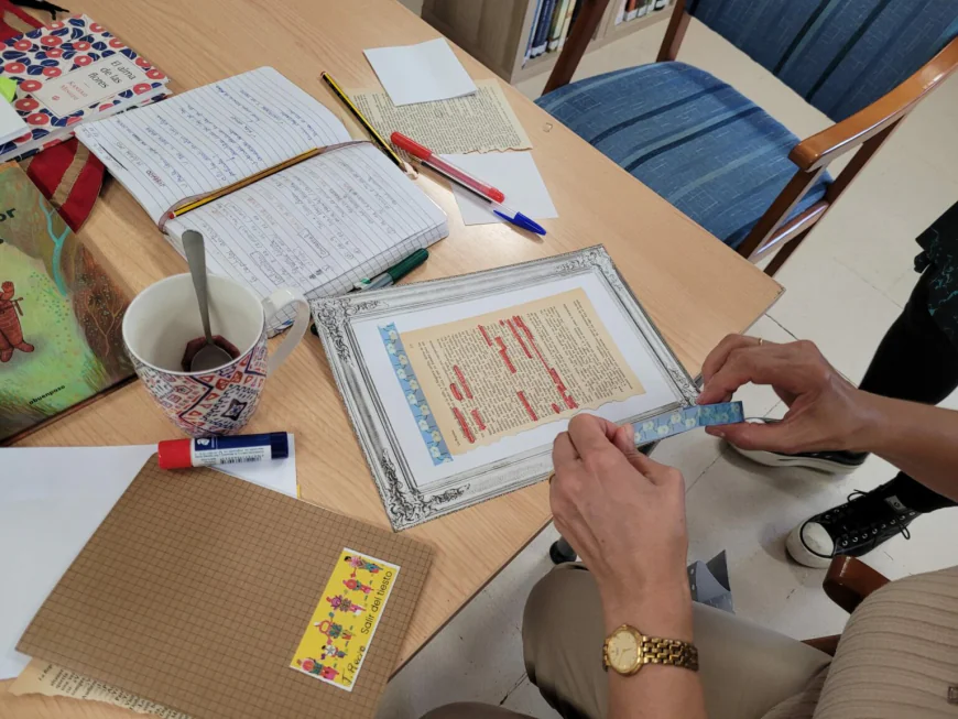 A través de distintos textos, las integrantes del taller compartieron sus inquietudes y arrancaron las páginas viejas de un libro para crear sus propias obras de arte.