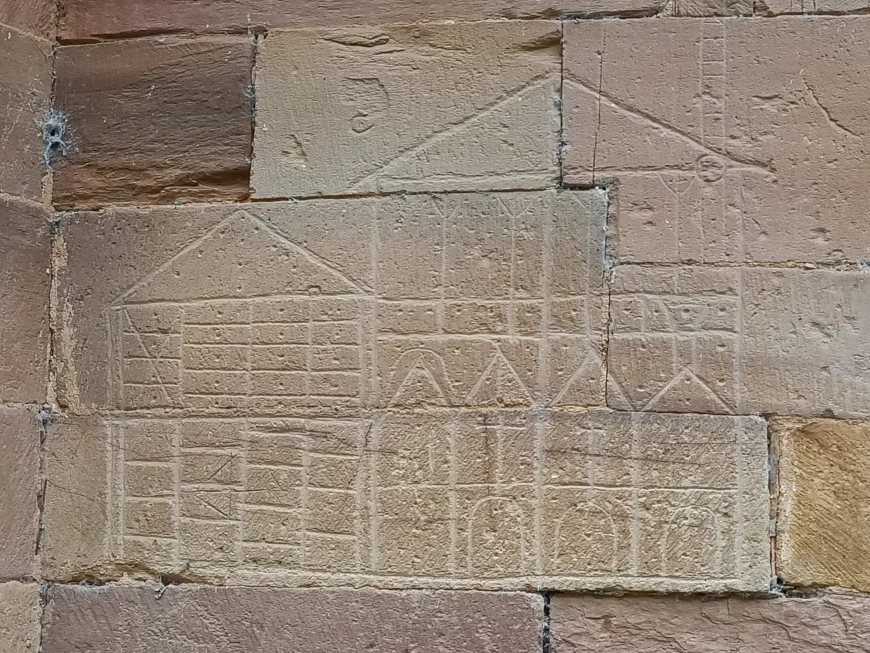 Dibujo esculpido en la propia piedra del monasterio- Foto de J. Vicente Álvarez