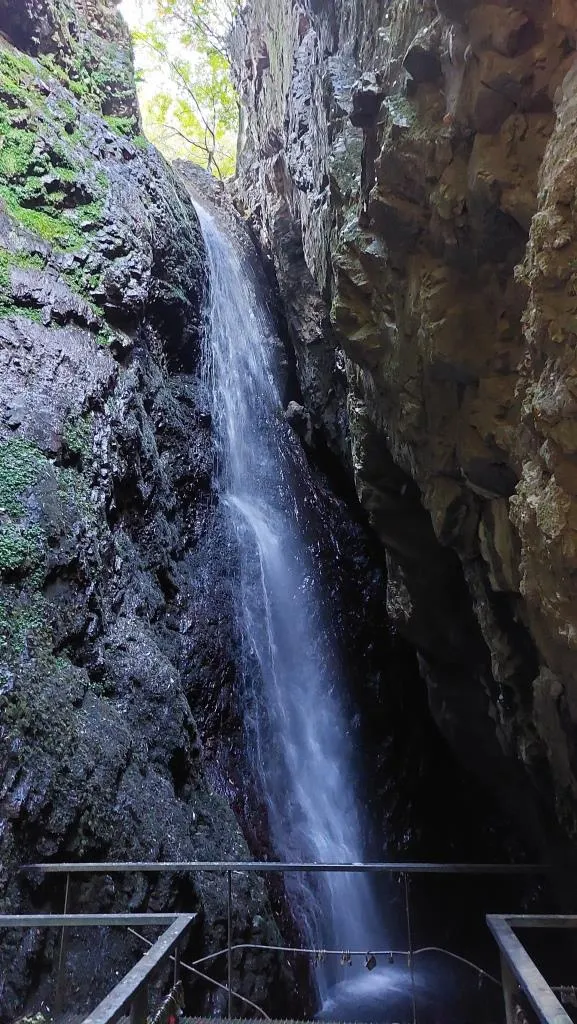 Cascada de difícil acceso, cuyas dimensiones son como de película de aventuras. Uno se siente un moderno Indiana Jones cuando observa la caída del agua y el espacio entre las rocas. Llegar hasta este escondido tesoro implica pagar el precio de cuestas casi verticales y sendero inestable. El grial de la cascada se esconde de los menos determinados a conquistarlo. Hecho un alto en el camino, la subida al pueblo vuelve a ser intensa, pero la perspectiva de poder ver otra vez los valles desde Valdorria merece la pena.